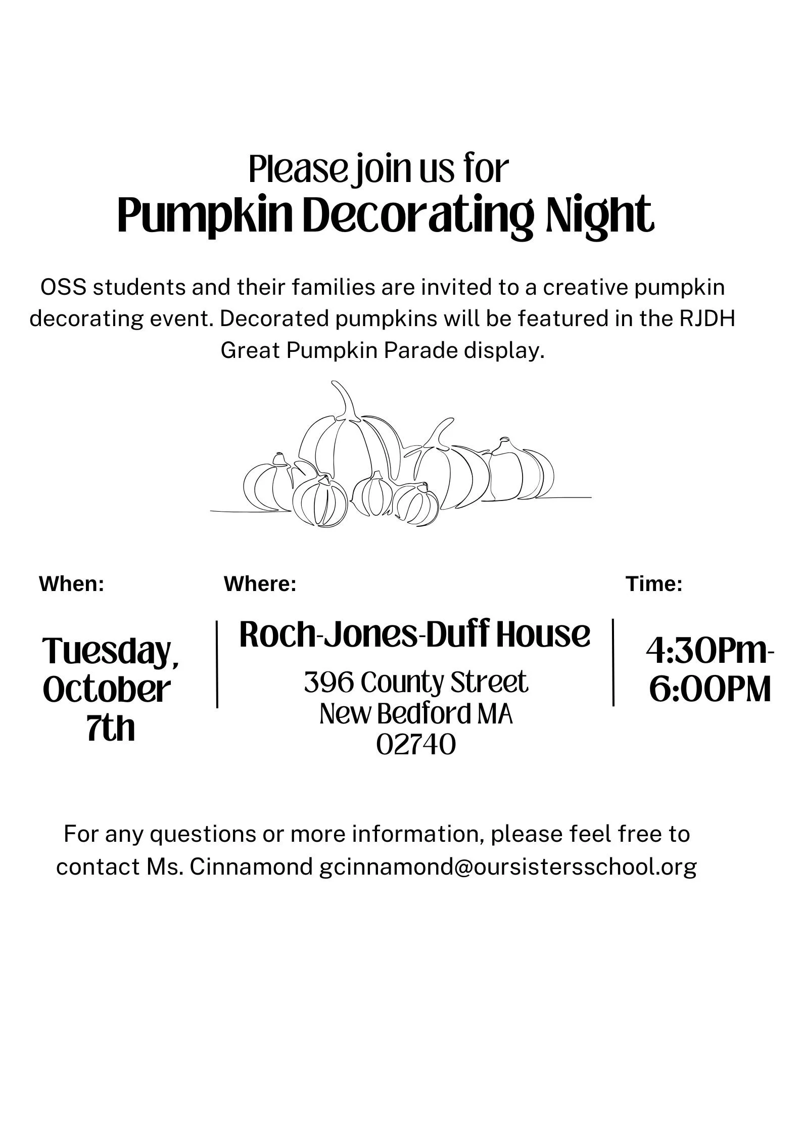 Join us for pumpkin carving if you can! Fliers in Friday Folders to sign up.