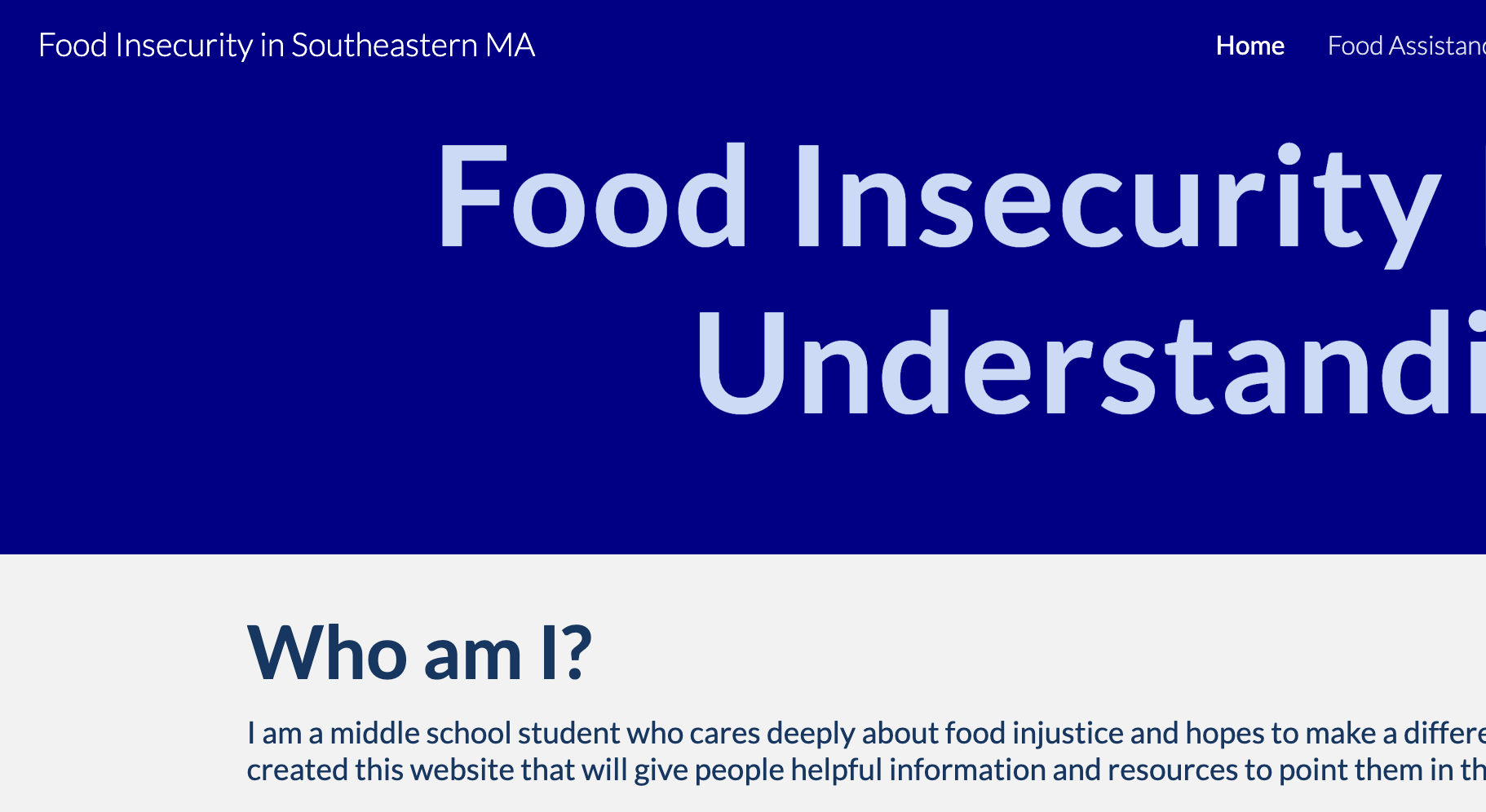 Abby’s capstone project is a website with links to food bank resources in our area. It is comprehensive, beautifully organized and super user friendly. Check it out, and share it widely! The photo above is intentionally partial since it is not clickable. The text link above, however, is!