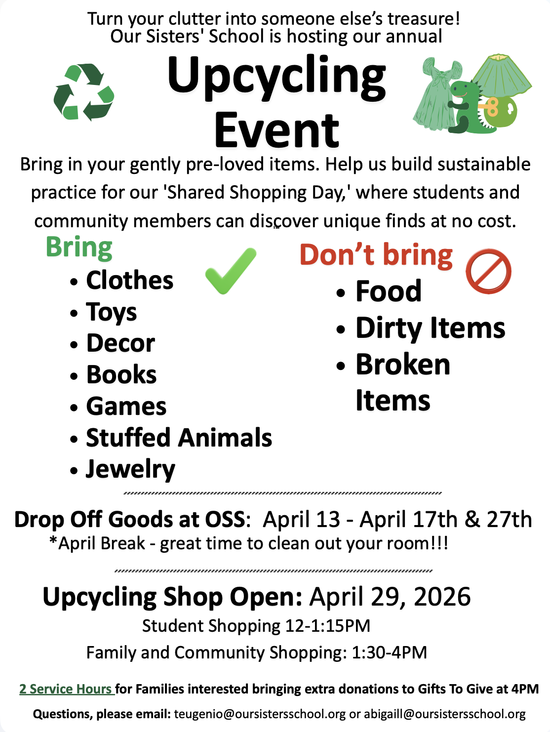 It’s time to register for OSS Summer Programming! Registration will close on Friday, April 10, so please register now. Our free programs are available for OSS families and give your students an opportunity to add fun activities to your summer plans. We would love to have your student join us! You can learn more about the programs listed below by reading about OSS summer programs, local day camp programs, and sleepaway camp options on our summer programs website (look for the tabs at the top of the page). If you’d like more information about any program, reach out to Ms. Sanders (email asanders@oursistersschool.org or call/text 774-328-6694). You can register for OSS programs here (be sure to click the SUBMIT button at the bottom of the form) or view a digital copy of the handout in your Friday folder here.