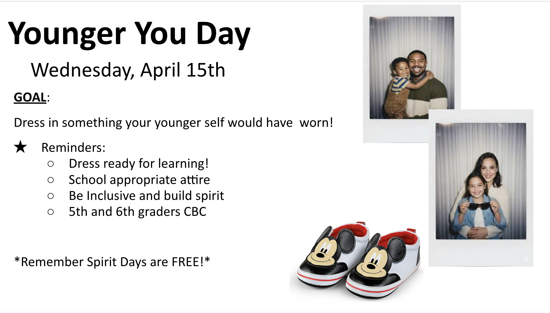 Wed. April 15 ~ OSS Spirit Day: YOUNGER YOU Day