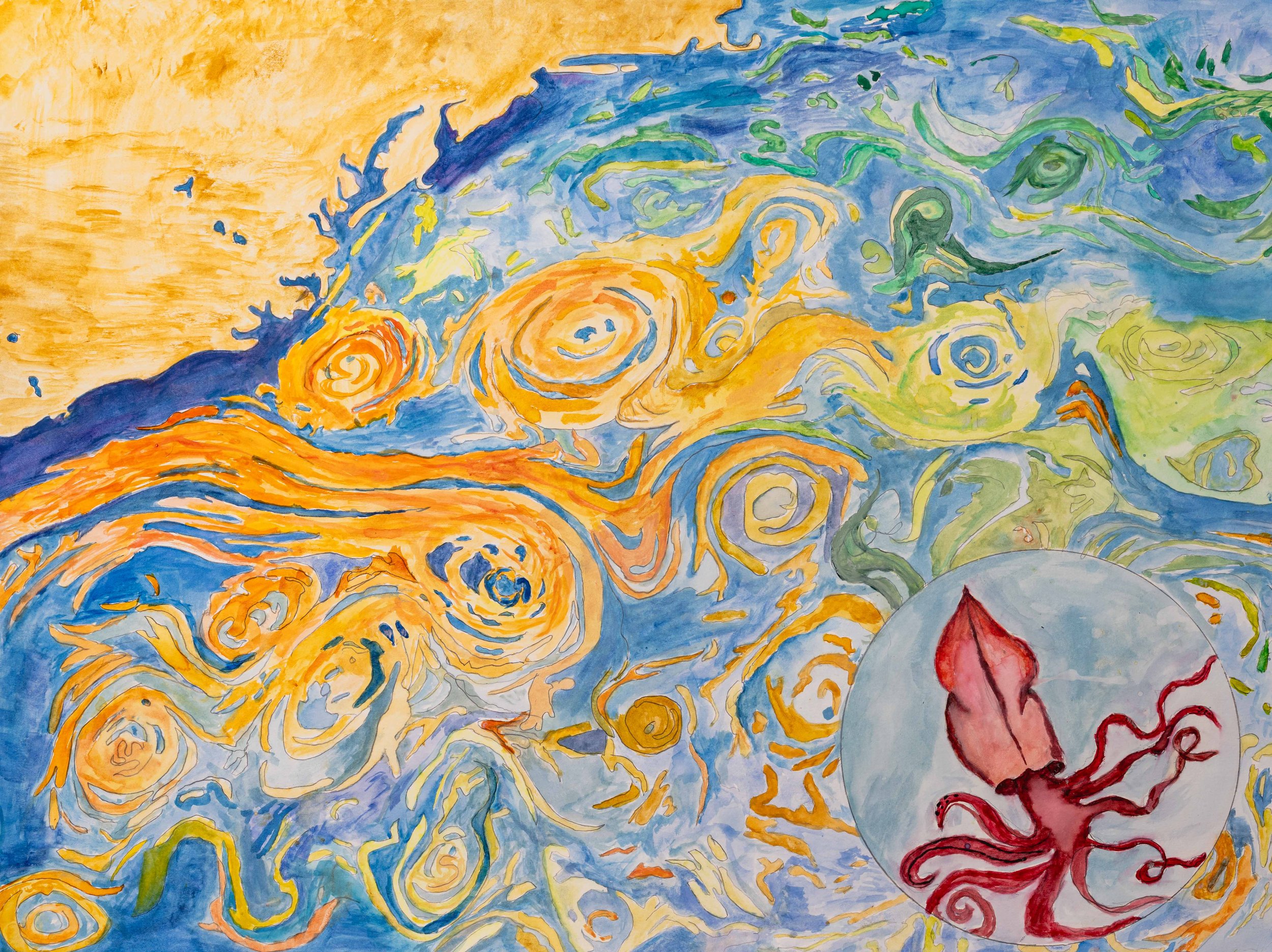 Grade 7 hosted an incredible event Thursday night at the Whaling Museum to present their interdisciplinary Science and Creative Suite artwork, “When Data Tells a Story: Art, Climate, and the Future We Shape.” Students analyzed real-world scientific datasets collected and organized by Woods Hole Oceanographic Institute (WHOI) and the Cape Cod Commercial Fishermen’s Alliance (CCCFA), and integrated it into watercolor pieces inspired by Jill Pelto.